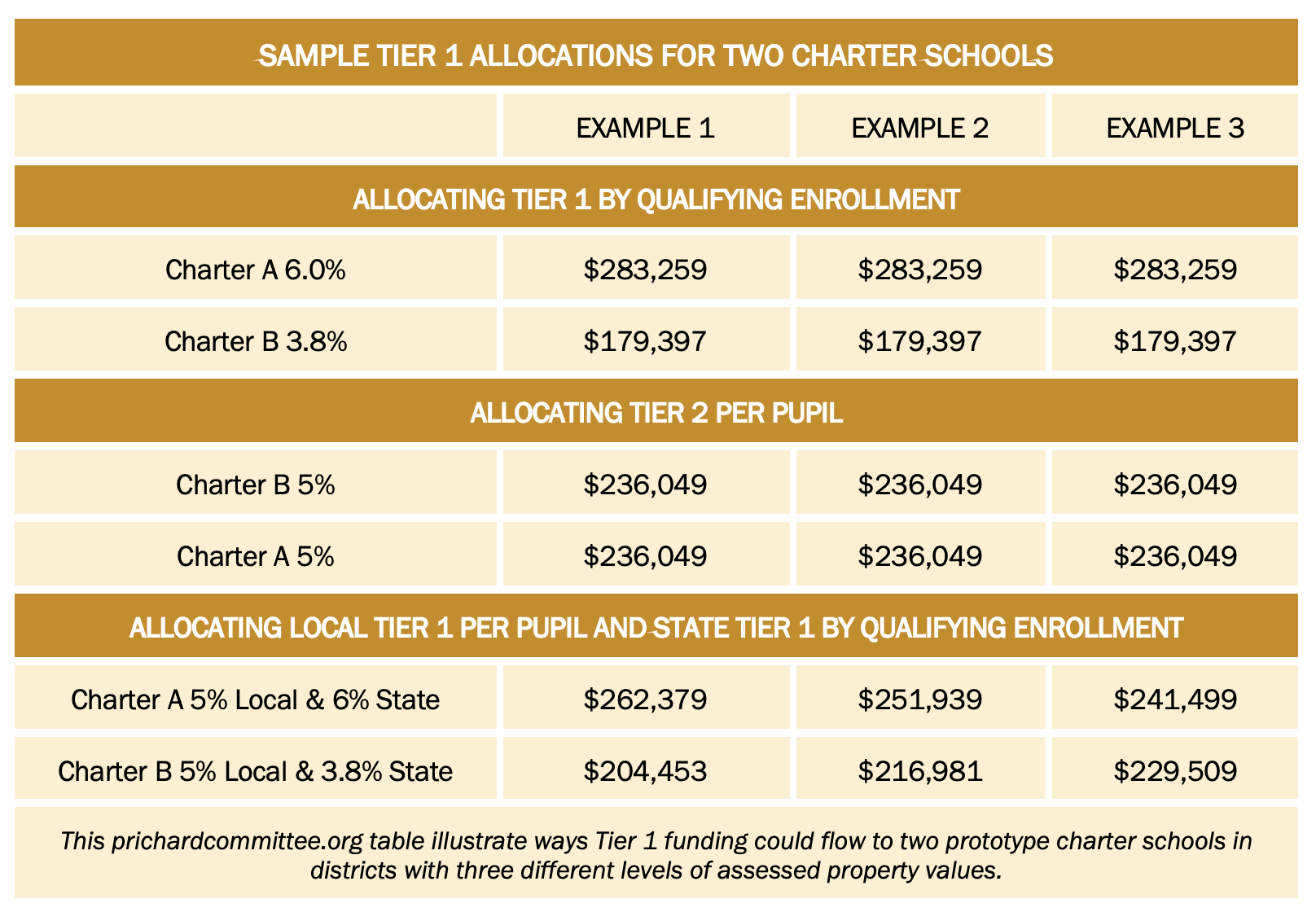 Legal sources: In 2022’s House Bill 9, Section 7 has the rules for funding charter schools. (See pages 30 to 35). KRS 157.360 shows most of the rules for SEEK base funding, with the add-on for students with limited English proficiency shown only in budget legislation like 2022’s House Bill 1. House Bill 1 also provides that the SEEK base guarantee will move up from $4,000 to $4,100 next year and $4,200 the year after: the calculations above kept the $4,000 figure because it makes the arithmetic easier to follow. KRS 157.440 shows the Tier 1 and Tier 2 rules.