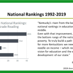 Ensuring we strengthen points all along the pipeline of education is critical for sustainability of our improvement and the exponential progress in the mid-term and the long-term necessary for Kentucky to improve its position in national standings. Following my 2019 annual keynote, we set to work on a new national rankings report, one that drives us toward the ultimate goal of improving the lives of Kentuckians. The Big Bold Future: National Rankings Report highlights our ranking as a state in each of the primary areas of our education system: early childhood, K12, and postsecondary. Our national rankings, which we’ll report to the public every year, goes one step further – to Quality of Life – as measured by educational attainment and median household income.
