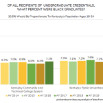 Since 2014, Black students’ share of those credentials has risen slightly at KCTCS and declined very slightly at the universities.