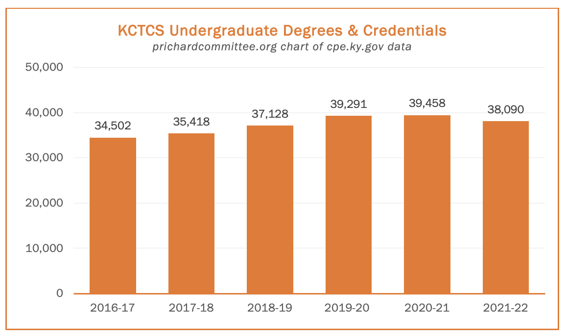 • A 10% gain in undergraduate credentials awarded by KCTCS (the Kentucky Community and Technical College System)