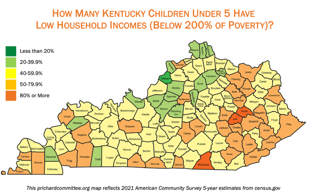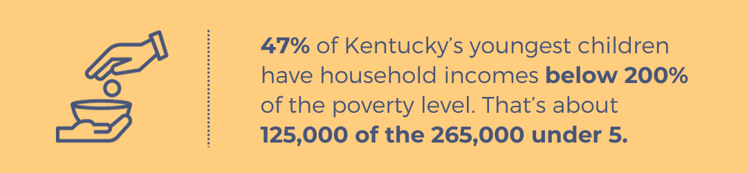 47% of Kentucky’s youngest children have household incomes below 200% of the poverty level. That’s about 125,000 of the 265,000 under 5.